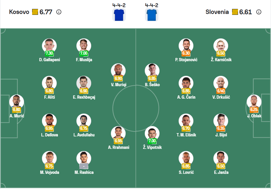 Kosovo chưa tạo đc nhiều ấn tượng khi tham gia các vòng loại của khu vực, họ chưa từng dự một giải đấu lớn nào. Ở vòng loại World Cup năm nay đội bóng này cũng không được đánh giá cao nhưng họ đã tạo ra bất ngờ khi thắng Thụy Điển ở lượt đấu trước. Nếu tiếp tục thắng trước Slovenia thì các cầu thủ Kosovo hoàn toàn có thể hy vọng vào vị trí nhì bảng để hy vọng giành vé dự World Cup qua trận play off. Tuy nhiên rõ ràng Kosovo có chất lượng đội hình không cao nên sẽ rất khó để lặp lại chiến thắng ở lượt đấu trước, khả năng đội bóng chủ nhà sẽ chỉ có được trận hòa ở lượt đấu này.