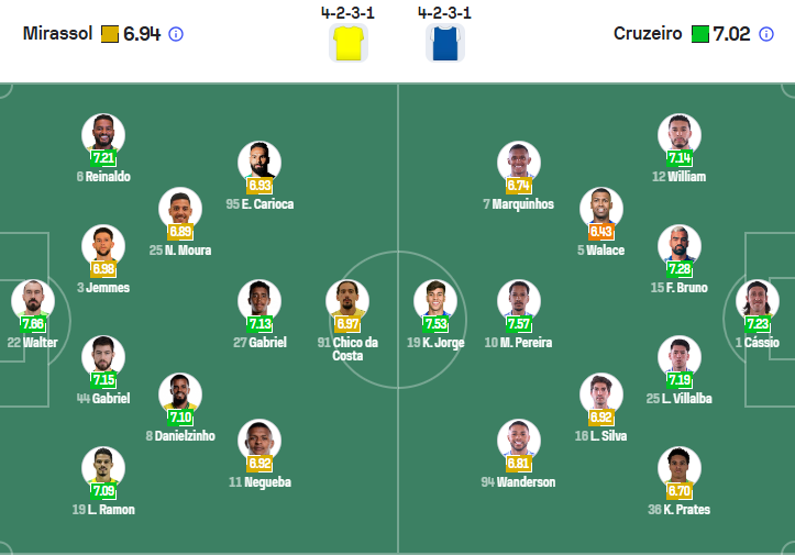 Cruzeiro mùa trước chỉ đứng thứ 9, vị trí chưa thể khiến các fan hài lòng. Mùa bóng này đội bóng của HLV Leonardo Jardim đang chơi tốt hơn rất nhiều khi tạm thời đứng thứ 2 trên bảng xếp hạng, dù vậy phong độ của các cầu thủ Cruzeiro thời gian gần đây không hề tốt khi chỉ thắng 2/5 vòng gần nhất và nếu các đội phía sau đá tốt các trận đá bù thì họ sẽ mất vị trí đang có. Chính vì vậy Cruzeiro cần một kết quả tốt ở vòng đấu sắp tới. Tuy nhiên đến làm khách trên sân của MIrassol đang chơi tốt không phải điều dễ dàng, nhiều khả năng Cruzeiro sẽ chỉ có thể giành được một kết quả hòa.