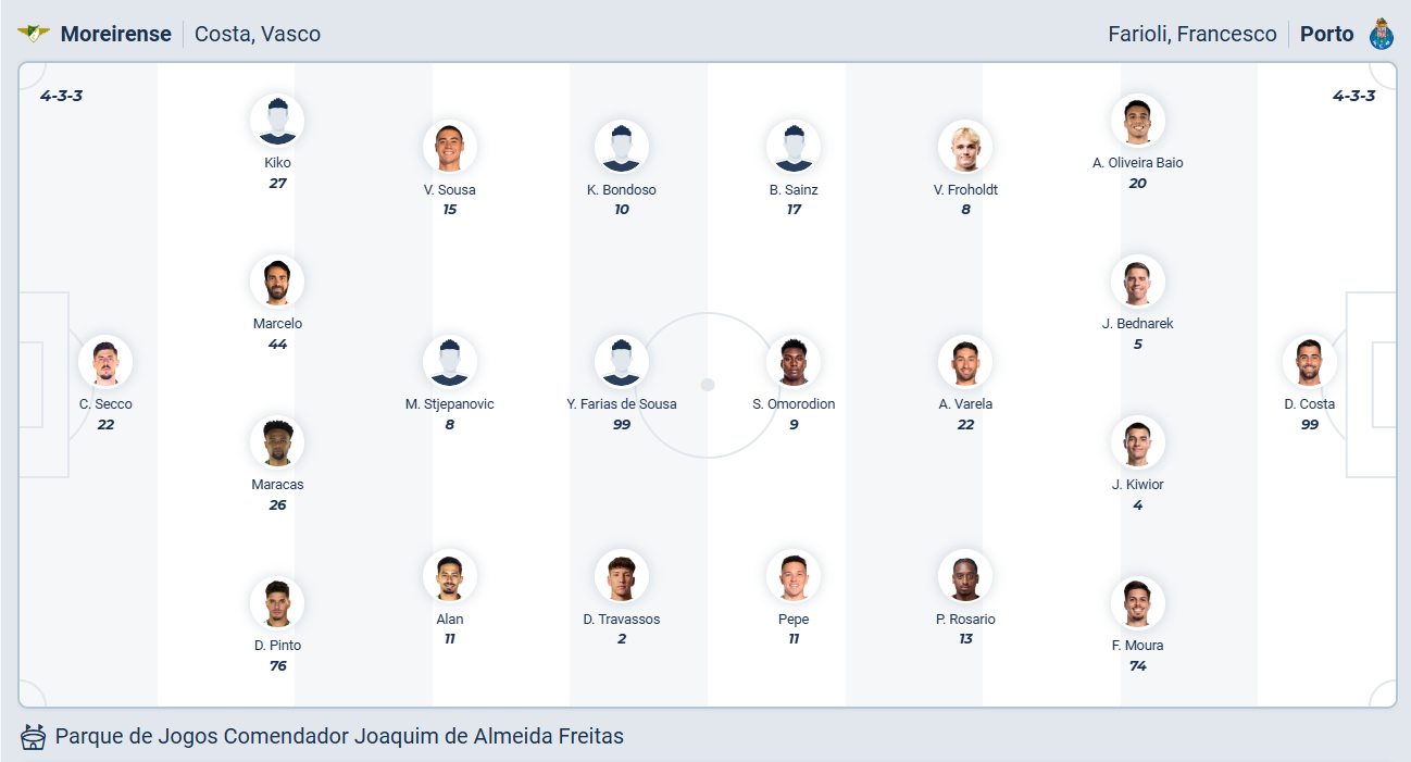 Porto sau 3 mùa giải không thể vô địch quốc gia đang rất muốn làm điều đó ở mùa giải năm nay, họ khởi đầu mùa giải rất ổn khi thắng 7, hòa 1 sau 8 vòng đấu cùng vị trí đầu bảng. Mùa giải vẫn còn rất dài và thầy trò HLV Francesco Farioli cần tiếp tục giành chiến thắng trong các trận đấu của mình để tiếp tục có lợi thế trong cuộc đua vô địch. Đến làm khách trên sân của Moreirense không phải trận đấu quá khó khăn với Porto và nhiều khả năng với đội hình vượt trội thì họ không gặp nhiều khó khăn để ra về với 3 điểm trọn vẹn.
