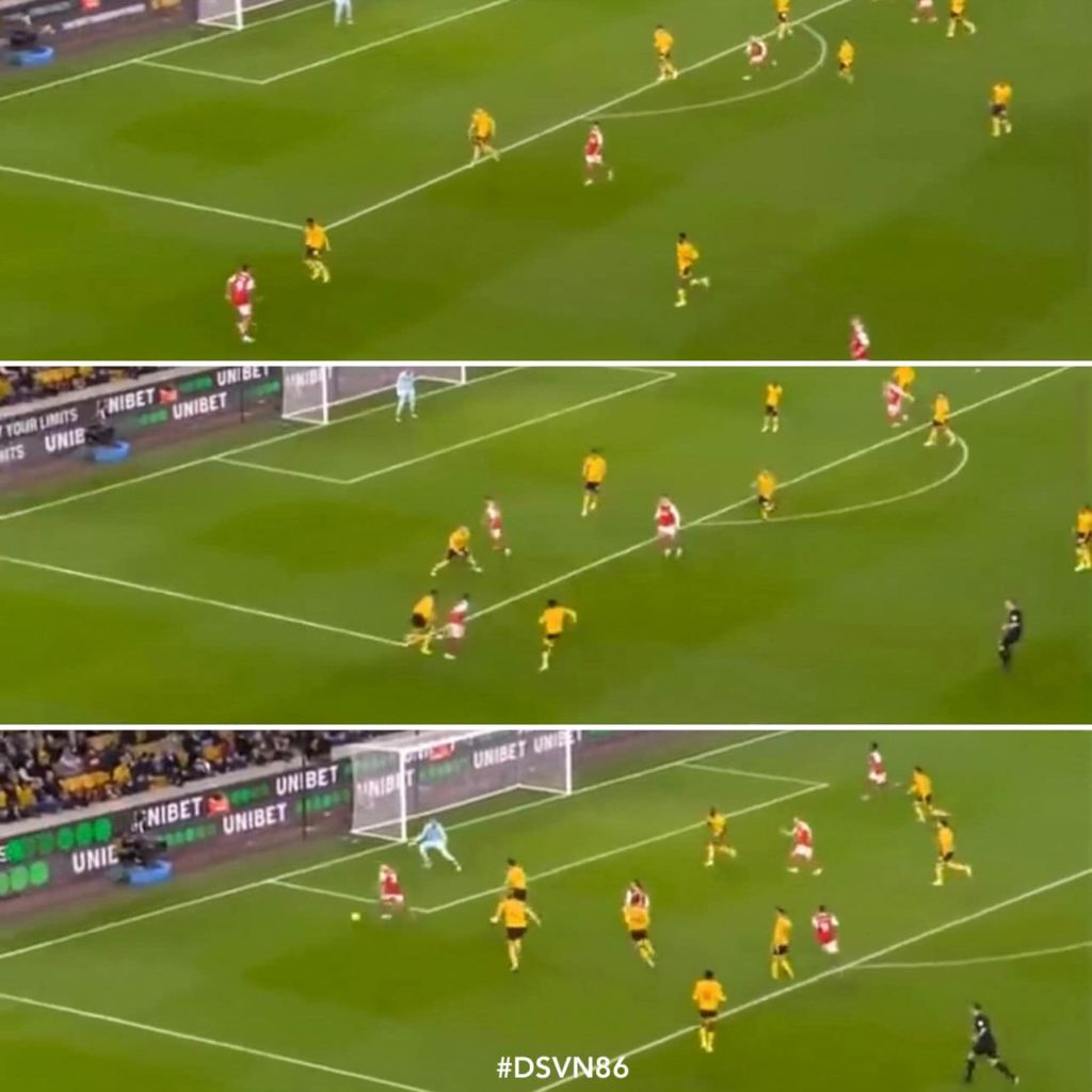 Gabriel Jesus sau đó đã tung ra đường chuyền cho Fabio Vieira, kèm theo tình huống di chuyển của Gabi đã kéo theo tới 5 cầu thủ của Wolverhampton tạo điều kiện cho đội trưởng Martin Ødegaard lập công cho Arsenal.